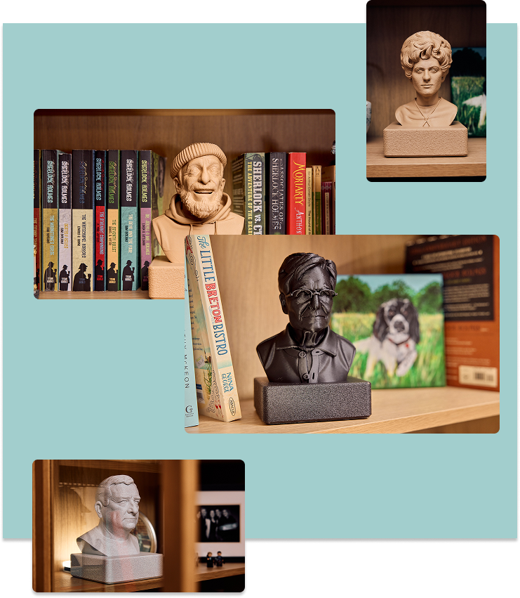 Everlyfe creates beautifully crafted, 3D-printed busts of loved ones, using photographs. Each piece is designed to capture presence, personality, and memory — transforming a moment in time into a lasting keepsake.